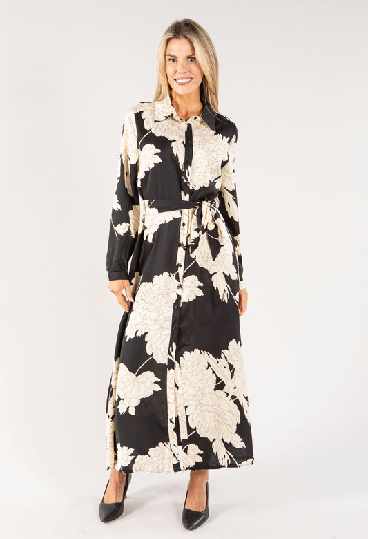 Floral Maxi Shirt Dress in Black