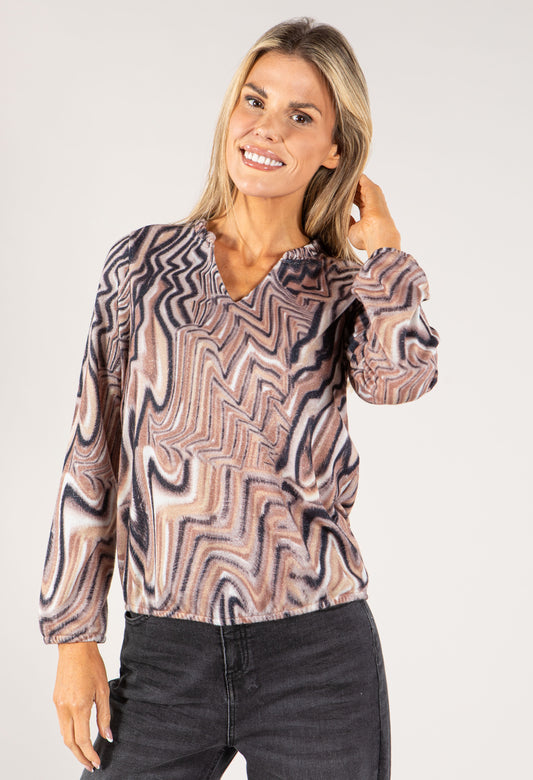 Abstract Print V Neck Top in Navy
