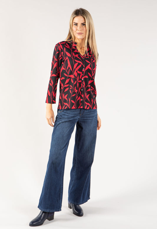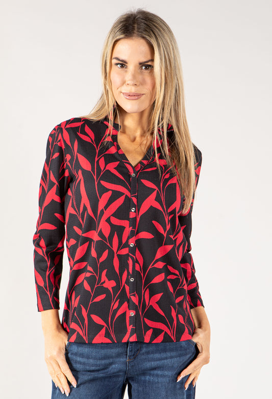 Leo Print Button Down Soft Knit Top