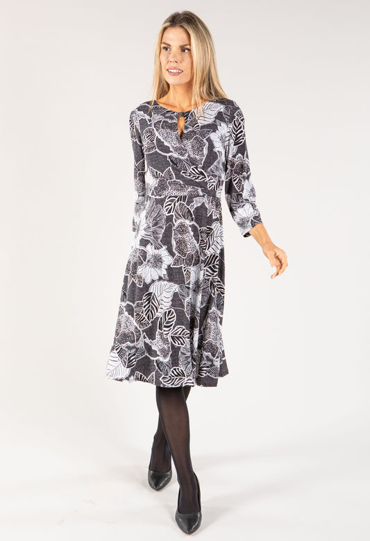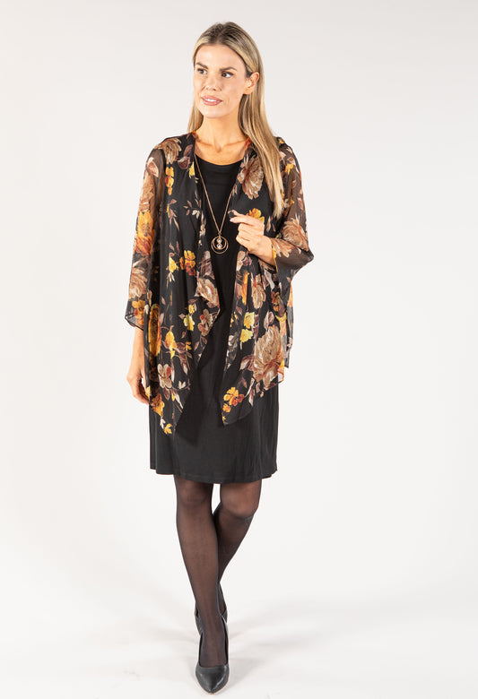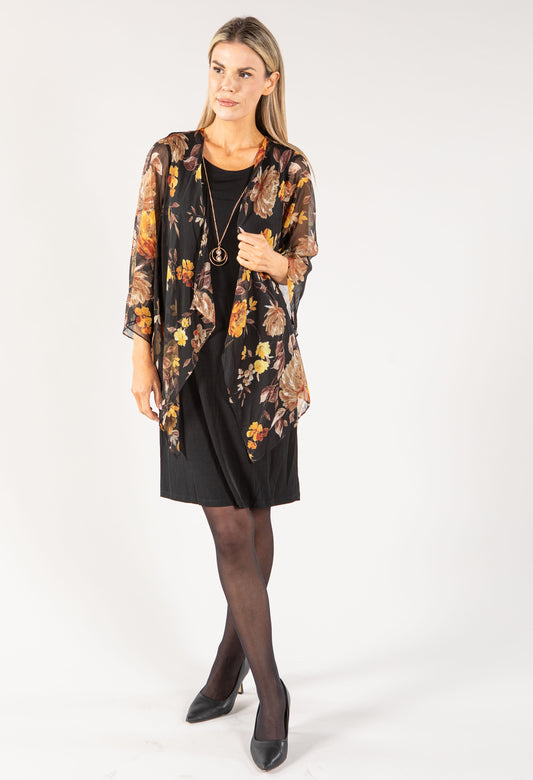 Leaf Print 2 in 1 Dress in Black