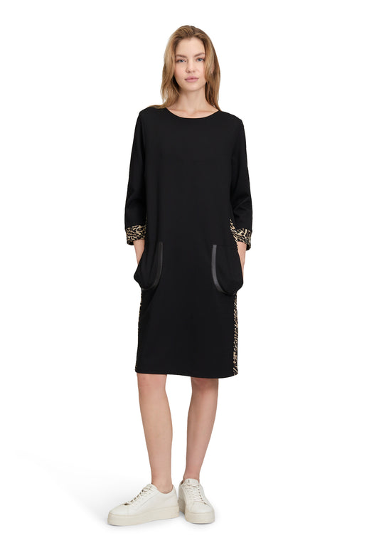 Round Neck Leopard Print Detail Dress in Black