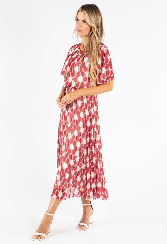 Retro Plisse Pleated Pop Over Dress in Burgundy