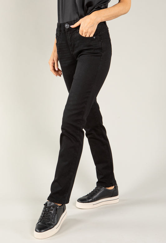 "Ab" Solution High Rise Cascading "D" Pocket Slim Straight Jeans in Black