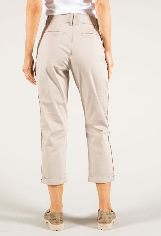 "Ab"solution High Rise Tapered Utility Pant with Snap Hem in Light Khaki