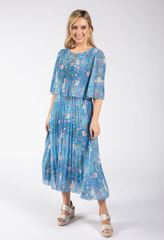 Mini Bloom Plisse Dress in Blue