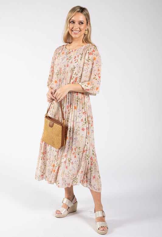 Marbella Floral Midi Dress in Pink Mix