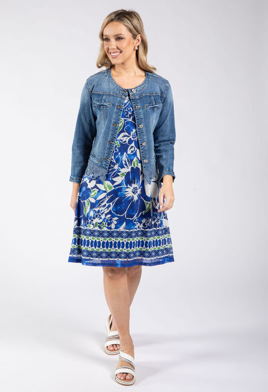 China Print Dress in Blue