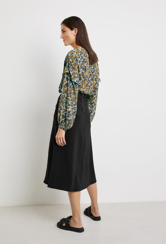 Woven Midi Skirt in Black