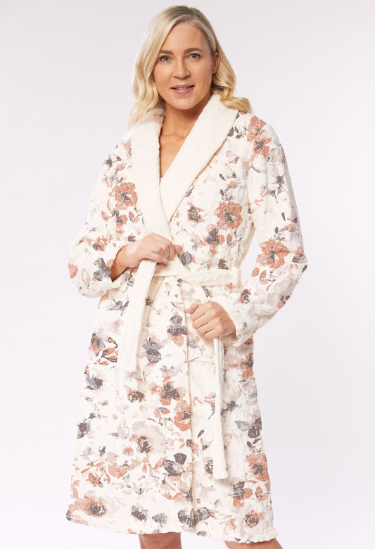 Hooded Jacquard Dressing Gown in Cream