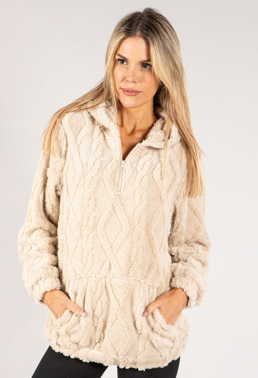 Cozy Jacquard Fleece Hoodie in Beige