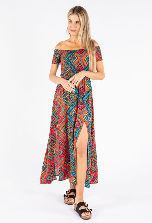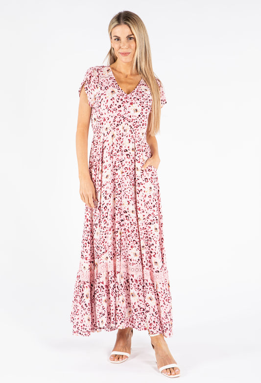 Ribbed Bodice Leopard Maxi Dress in Leopard