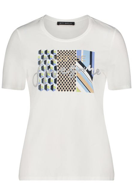Short Sleeve Top With Multi Print Front in Cream