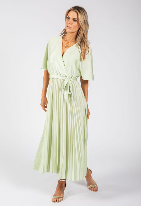 Plisse Pleated Wrap Midi Dress in Mint