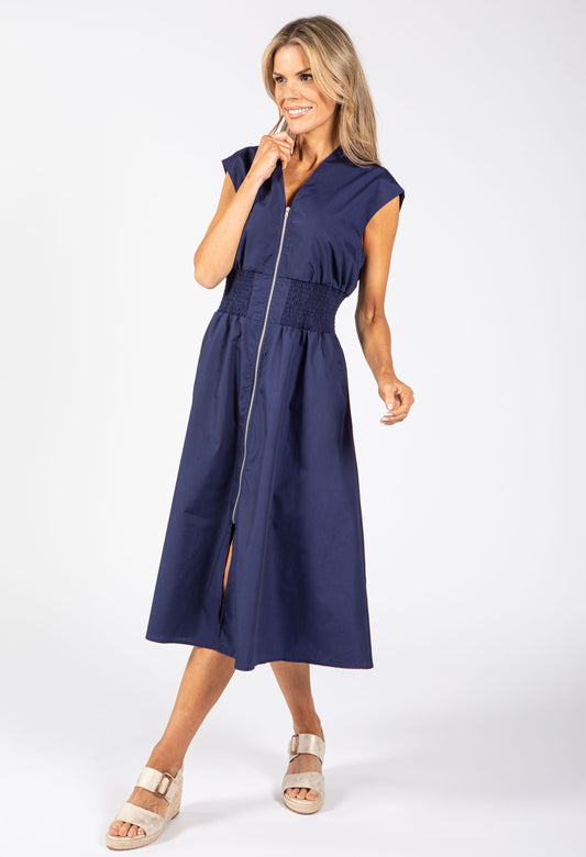Zip-Up Midi Dress in Navy