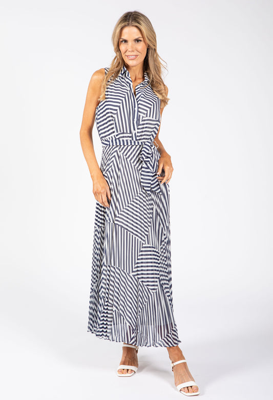 Asymmetrical Striped Shirt Dress in Navy