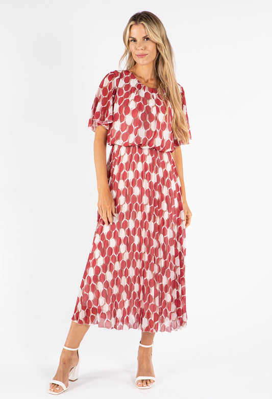 Paisley Plisse Pleated Pop Over Dress in Pink