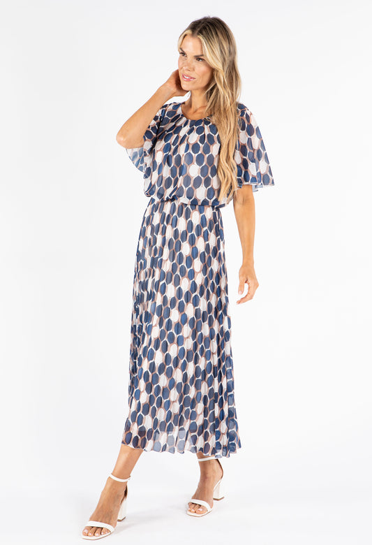 Plisse Pleat Polka Dot Maxi Dress in Navy