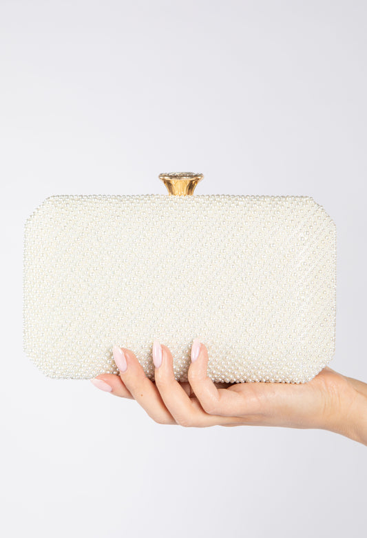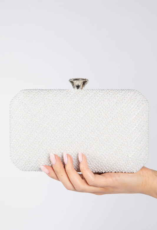 Diamante Stripe and Pearl Clutch Bag in Silver