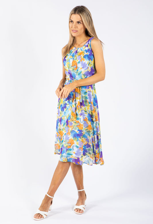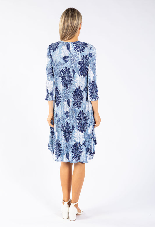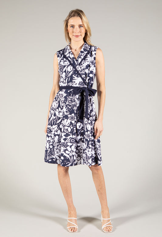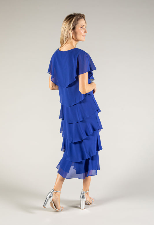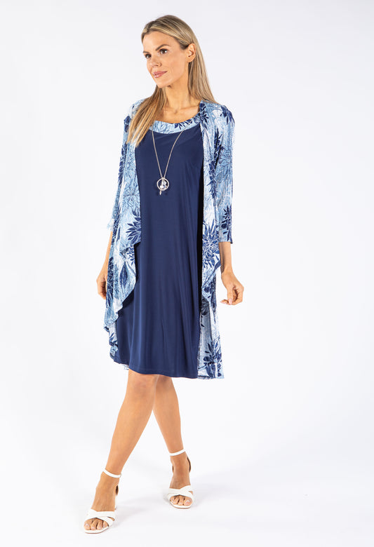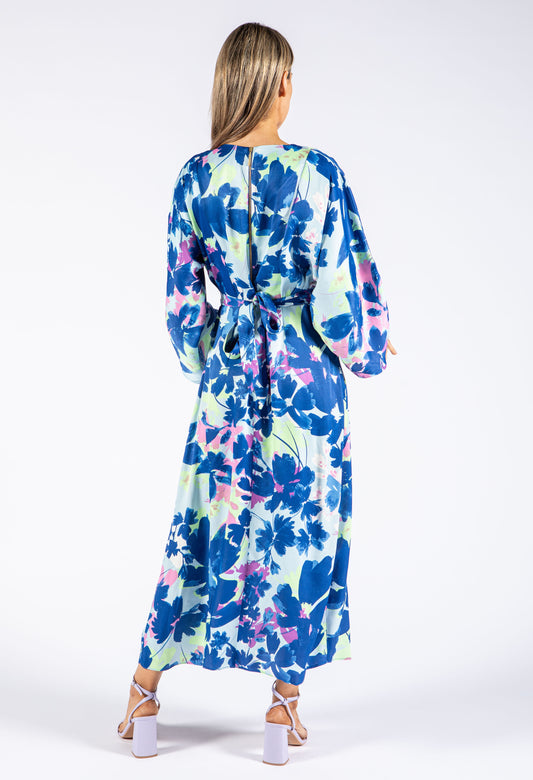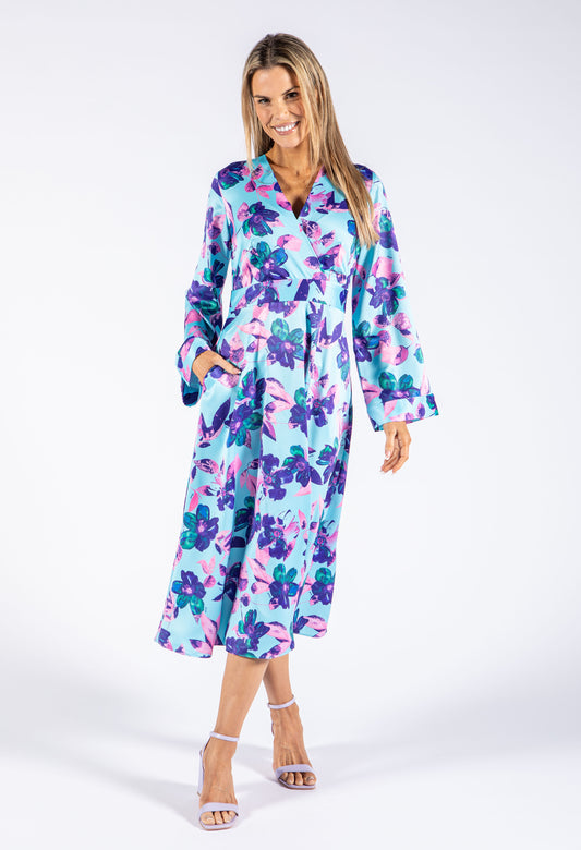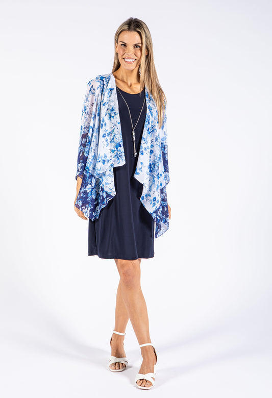 Liz Bolero Wrap Bodice Curve+ Midi Dress in Blue Multi