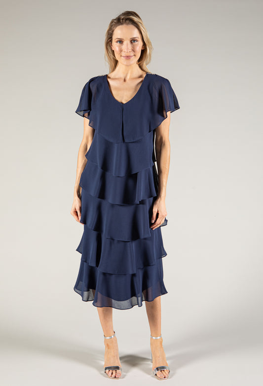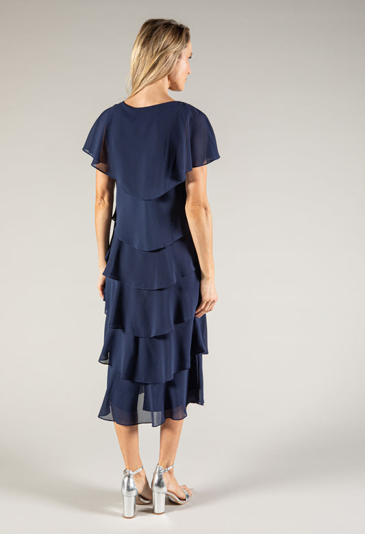 Victoria Angel Sleeve Mesh Midi Curve+ Dress in Dark Navy