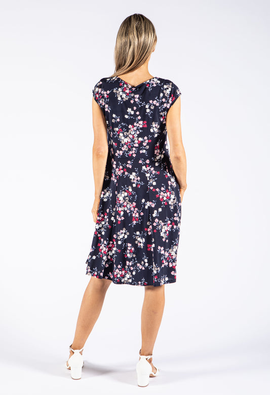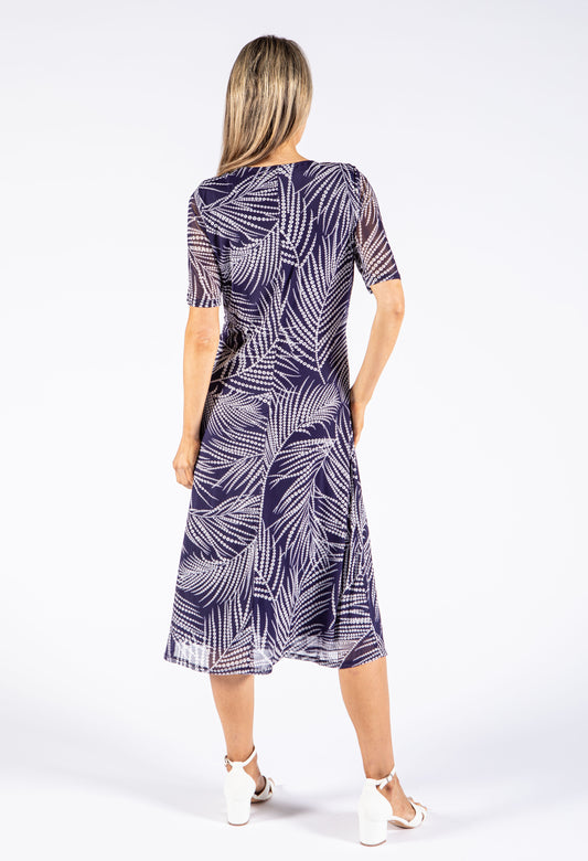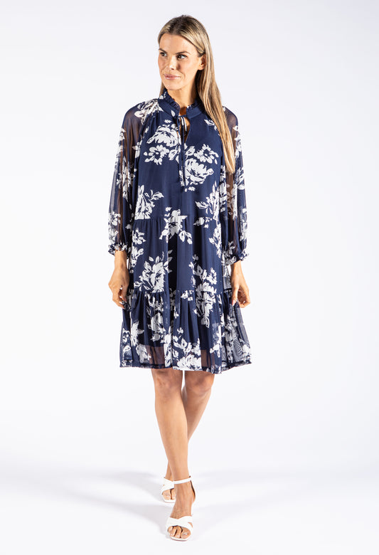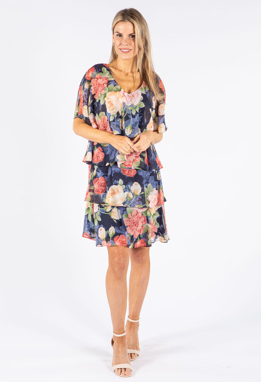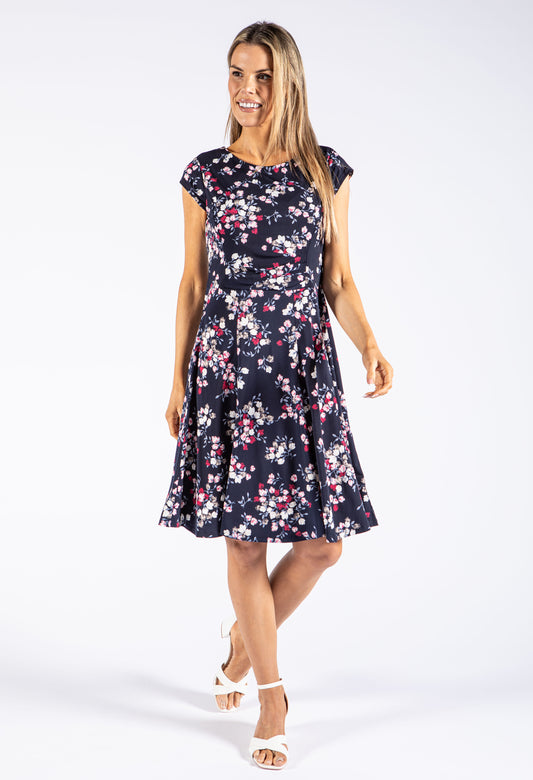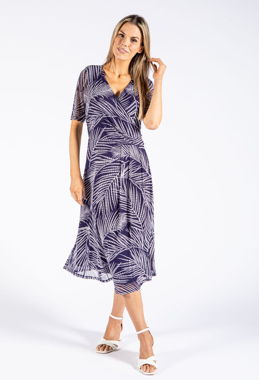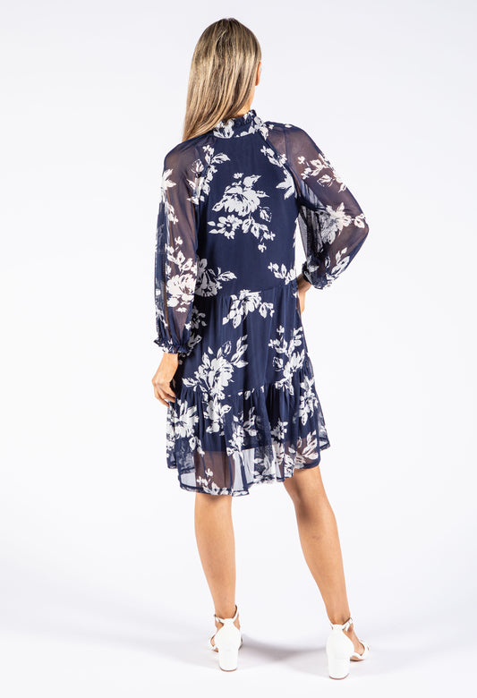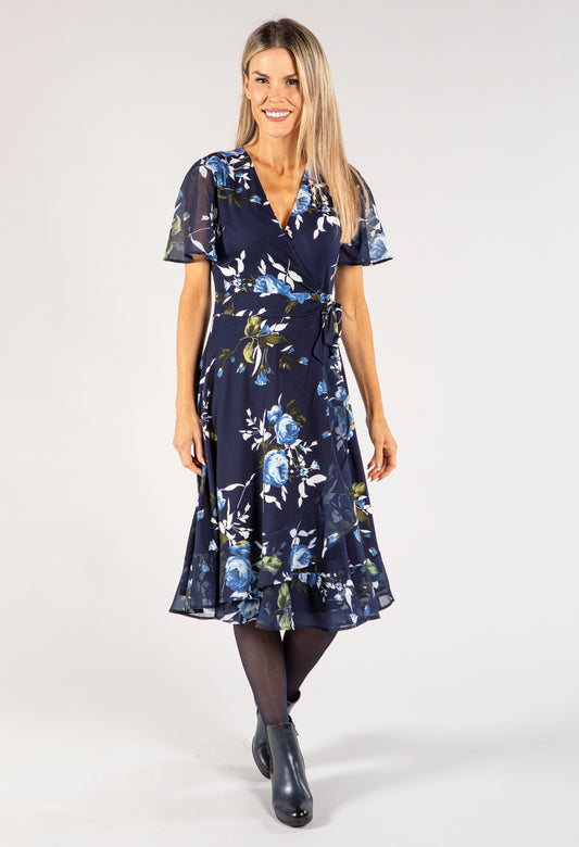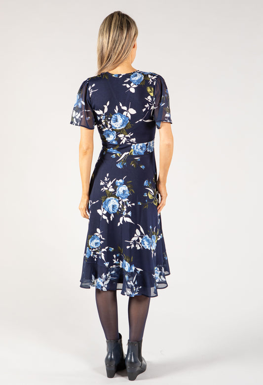 Victoria Angel Sleeve Mesh Midi Curve+ Dress in Navy Flower