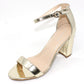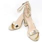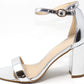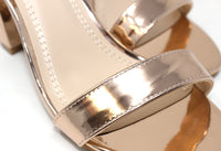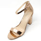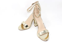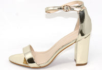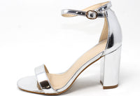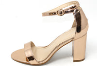 This shoe will keep you one stylish step ahead, with a metallic finish, open toe front and ankle strap it is the perfect shoe for any occasion.