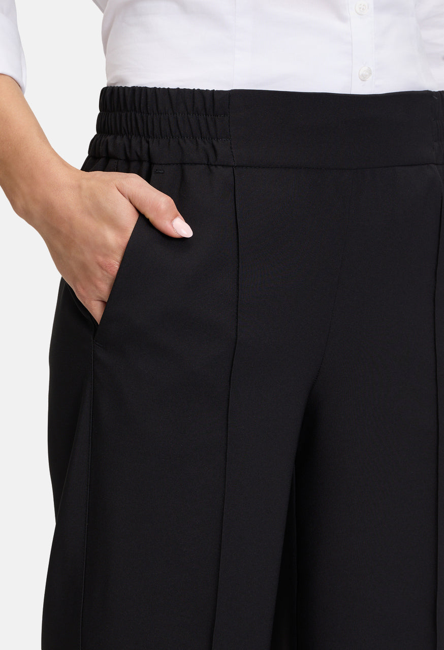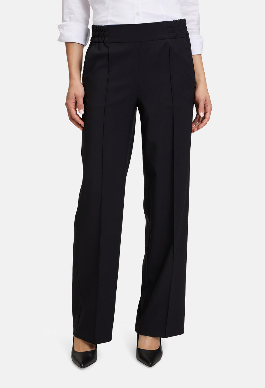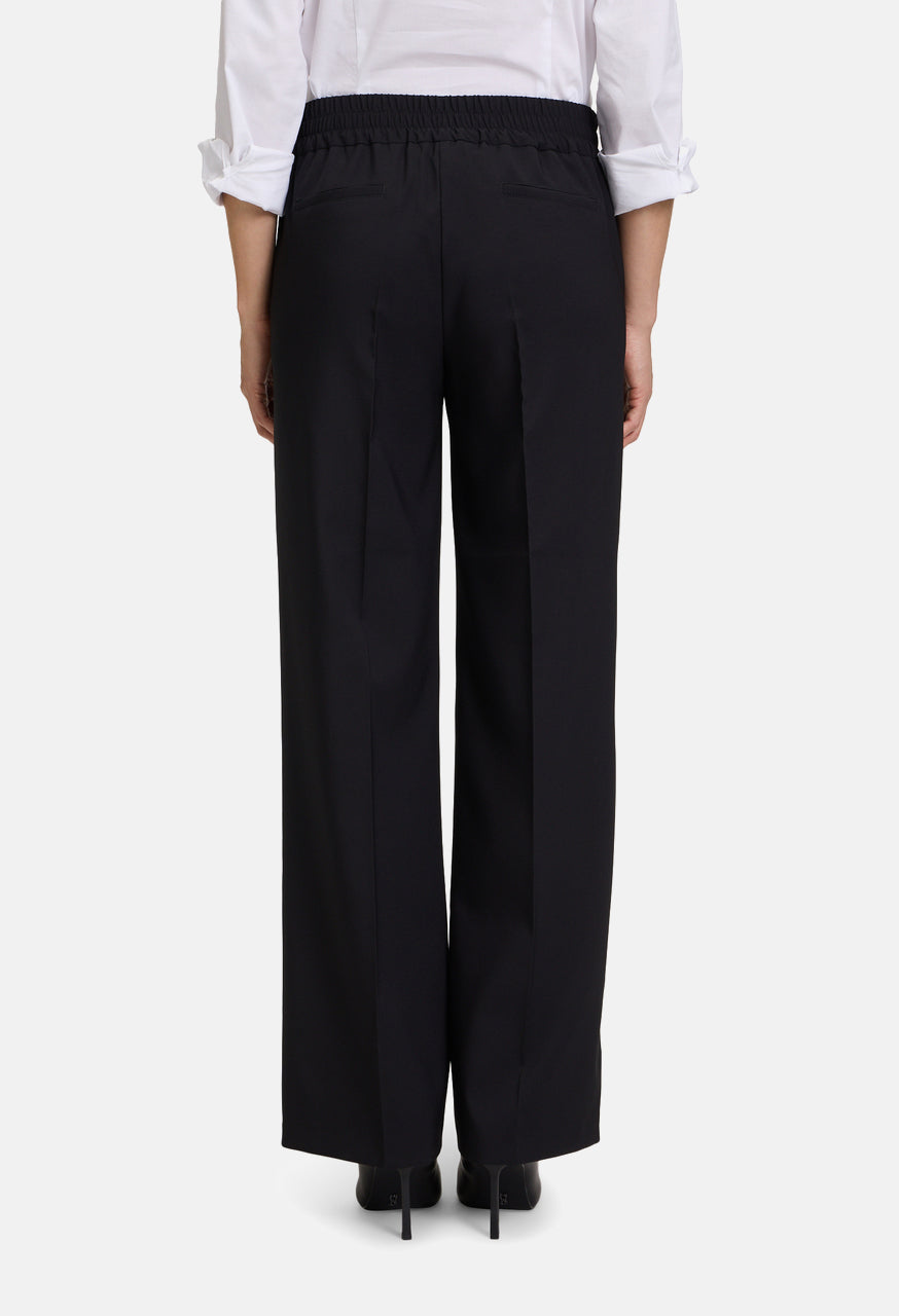 A trendy item for the fashion-conscious woman. The business trousers from Betty Barclay impress with their plain design and their fashionable touch. The piping along the legs gives the trousers an elegant look. With their relaxed fit, they offer a comfortable fit, while the elastic waistband offers additional comfort. The trousers are perfect for everyday office wear and can be combined in many ways. They embody a modern and stylish appearance in the business world.