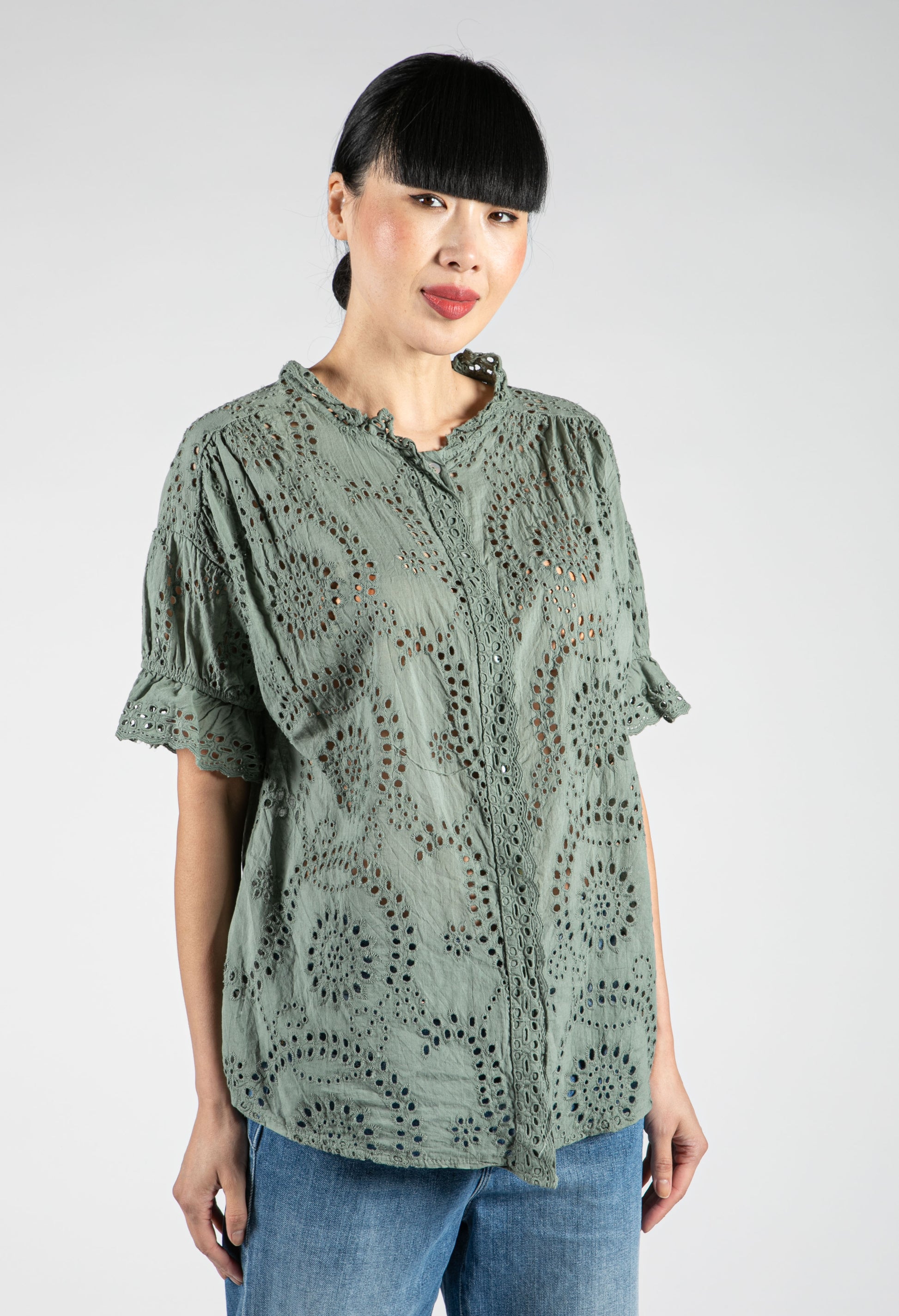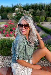 The Trend Room Embroidered Tie Hem Blouse in Khaki