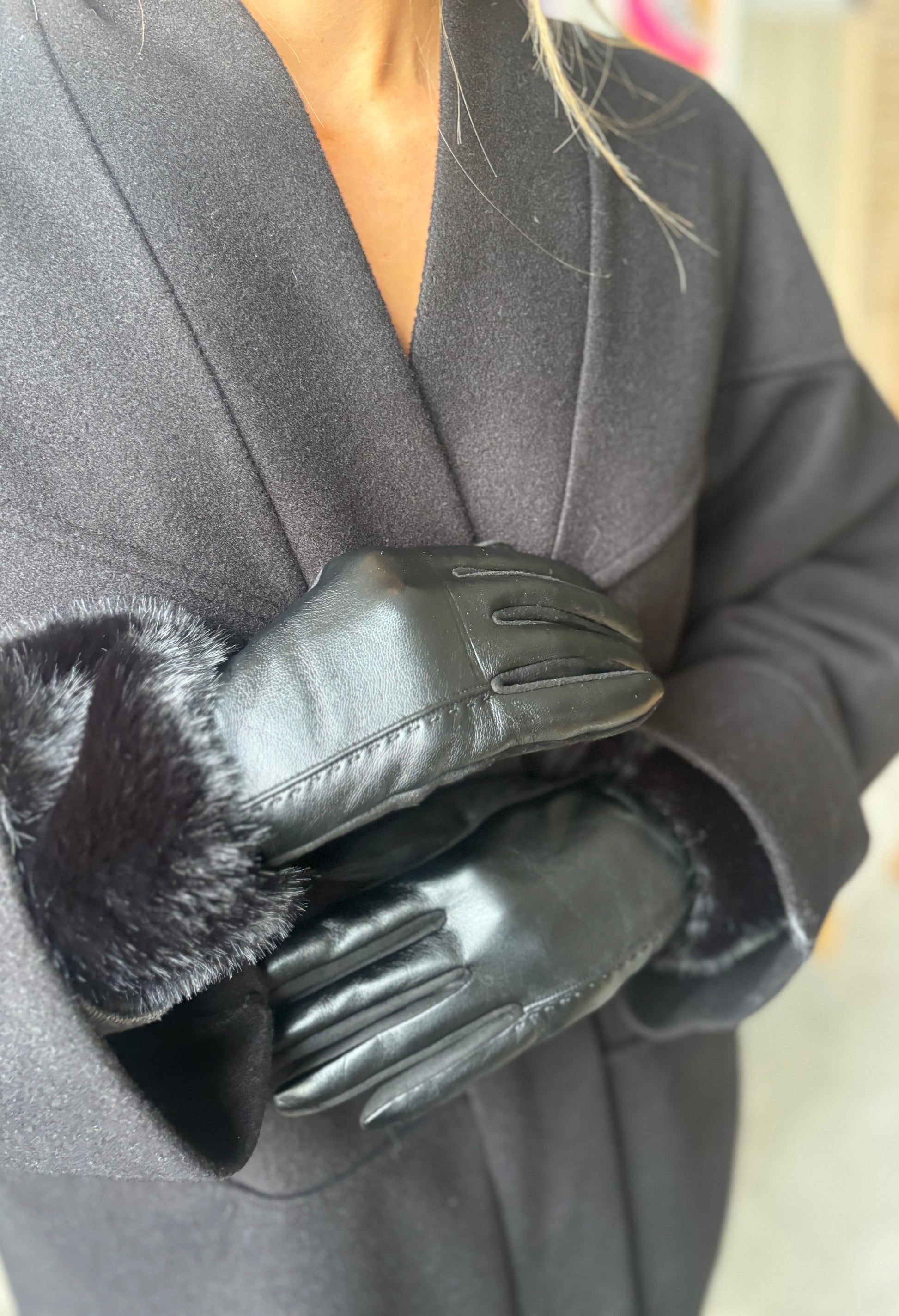 Stay stylish and connected with these elegant leather-look gloves, featuring a soft faux-fur trim for a touch of luxury. Designed with touch screen compatibility, they keep your hands warm without compromising on convenience. Perfect for chic, everyday wear.
