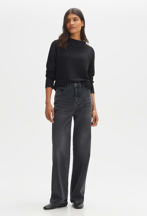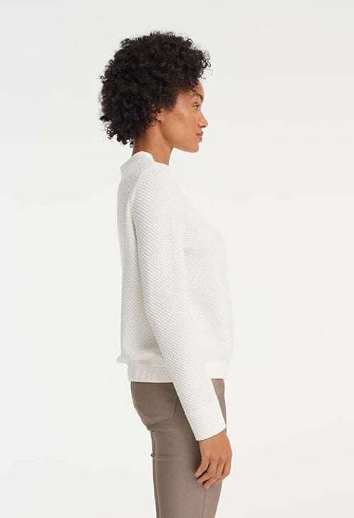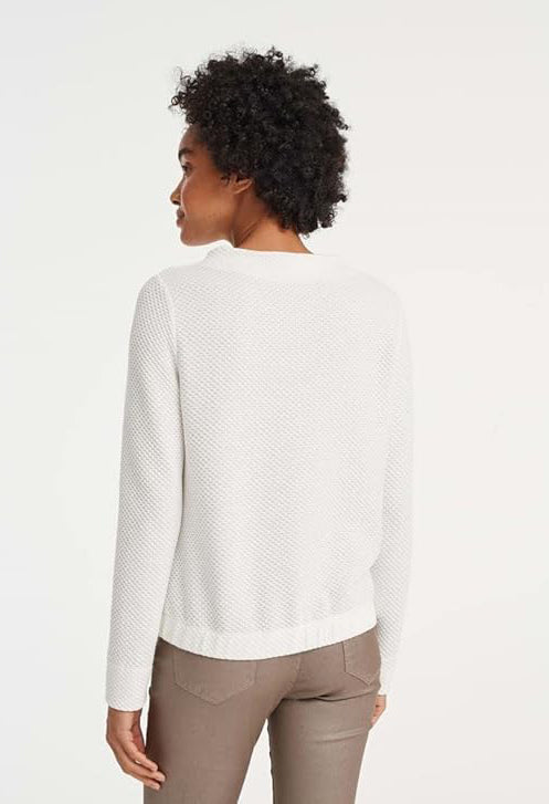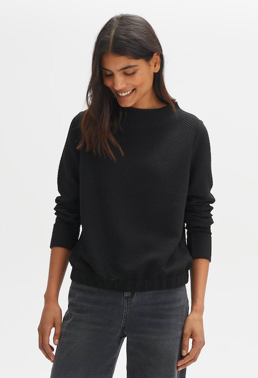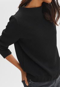 The sweatshirt has a waffle-like structure. The modern fit and features an elegant stand-up collar and is narrowly combined in the waistband with an elastic.