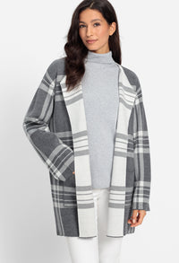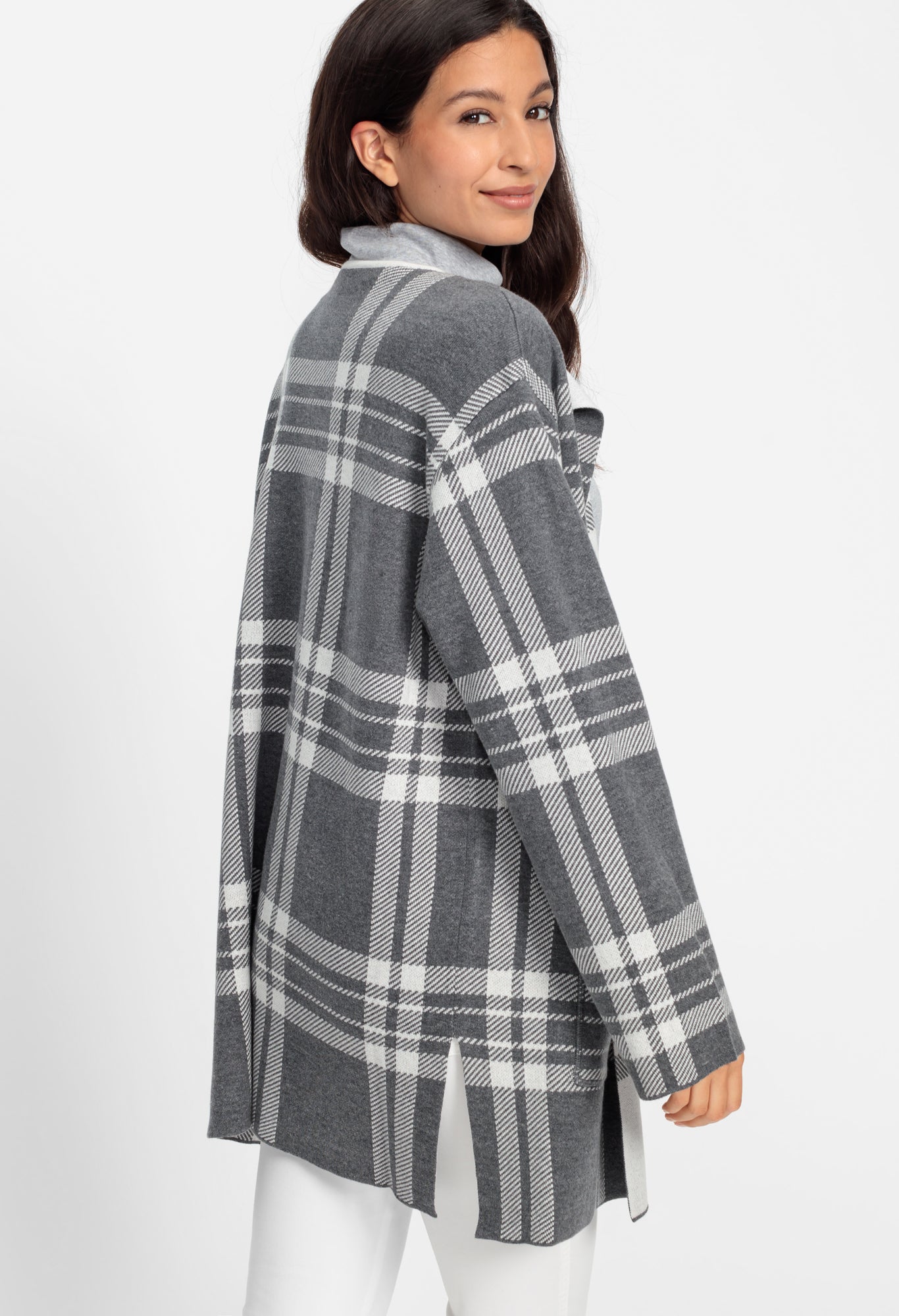 A perfect piece for effortless chic. This cardigan in a checked design combines casual elegance with a touch of exclusivity. The oversized fit, side slits and open front create a casual look, while the long sleeves, patch pockets and simple round neckline underline the functional touch. Made from an extra-soft cotton-polyacrylic blend, this cardigan offers first-class comfort with a charming twist.