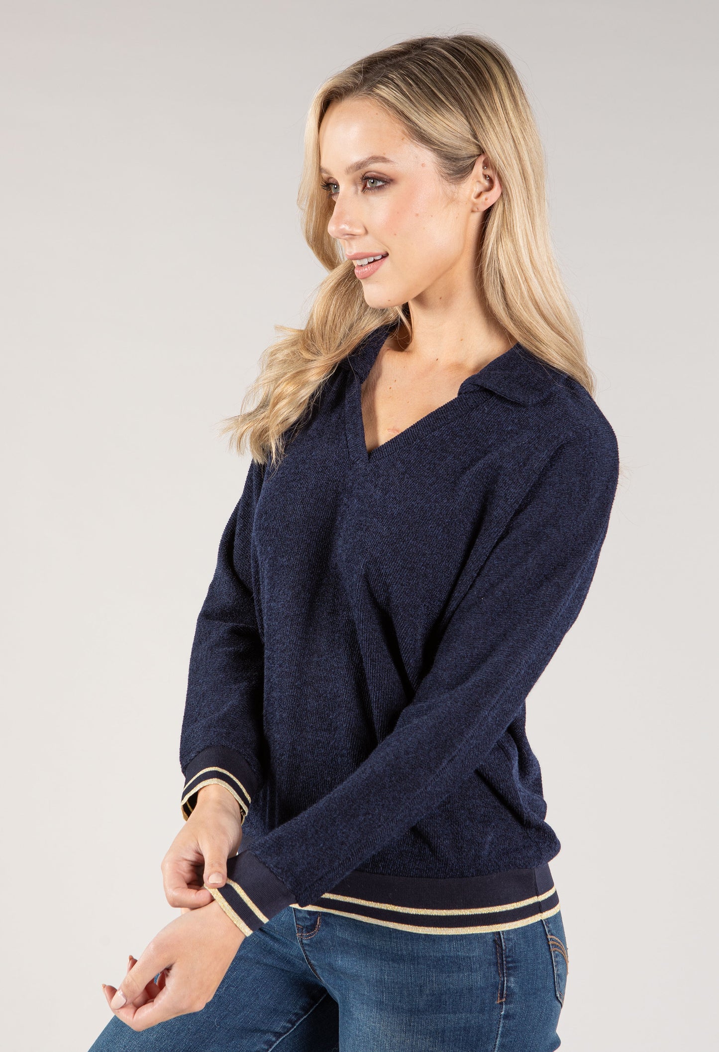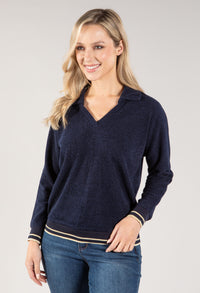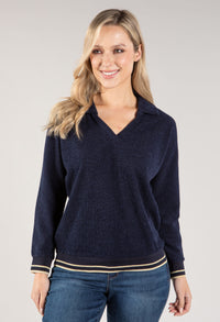 Twist Polo Neckline Soft Knit Pullover