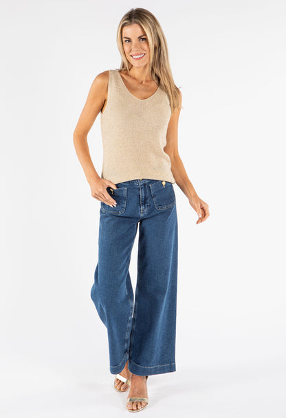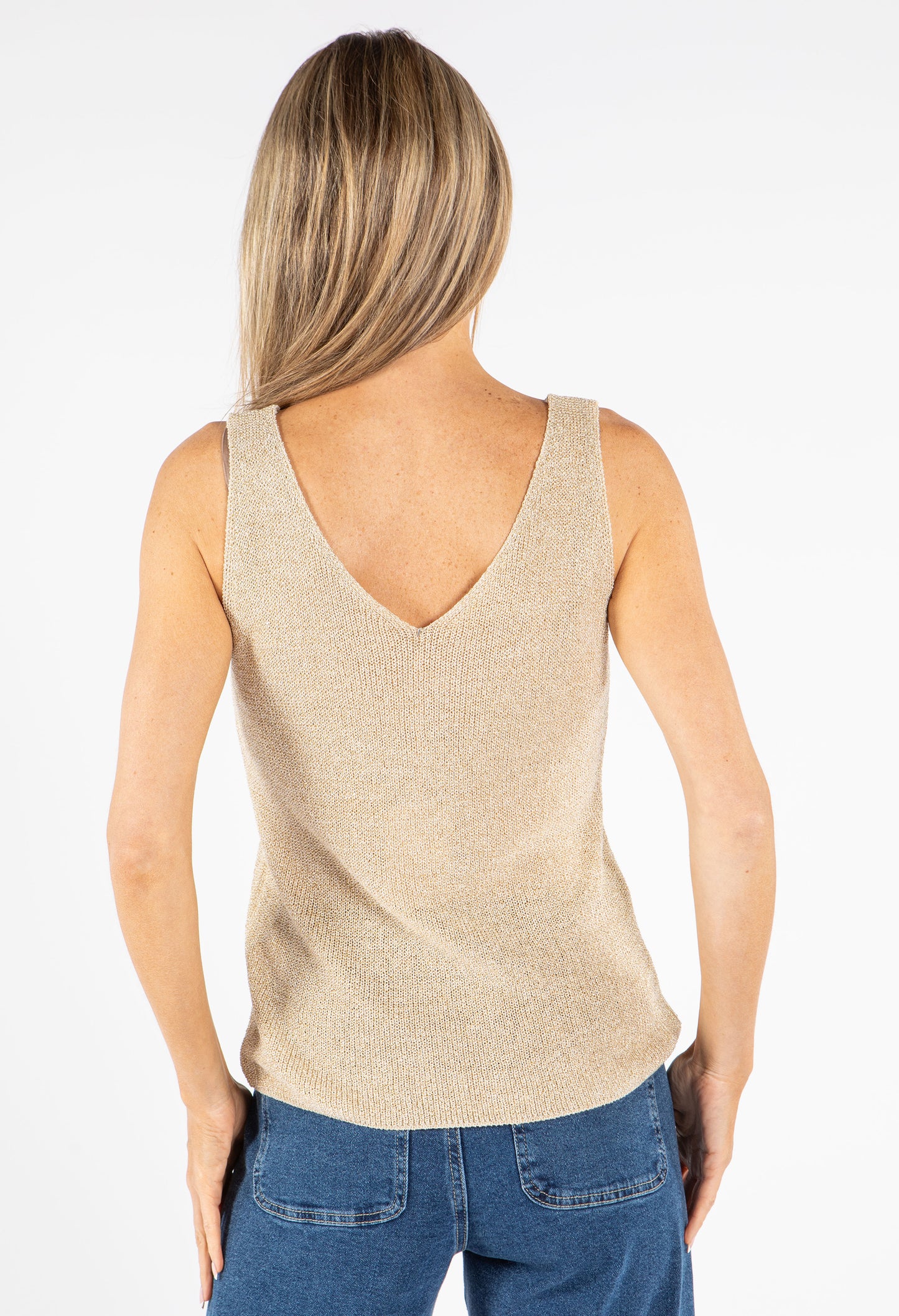 Be prepared to dazzle in this elegant Sleeveless Lurex Knit Top, featuring a trendy V-neckline and a comfortable, one-size-fits-all design.