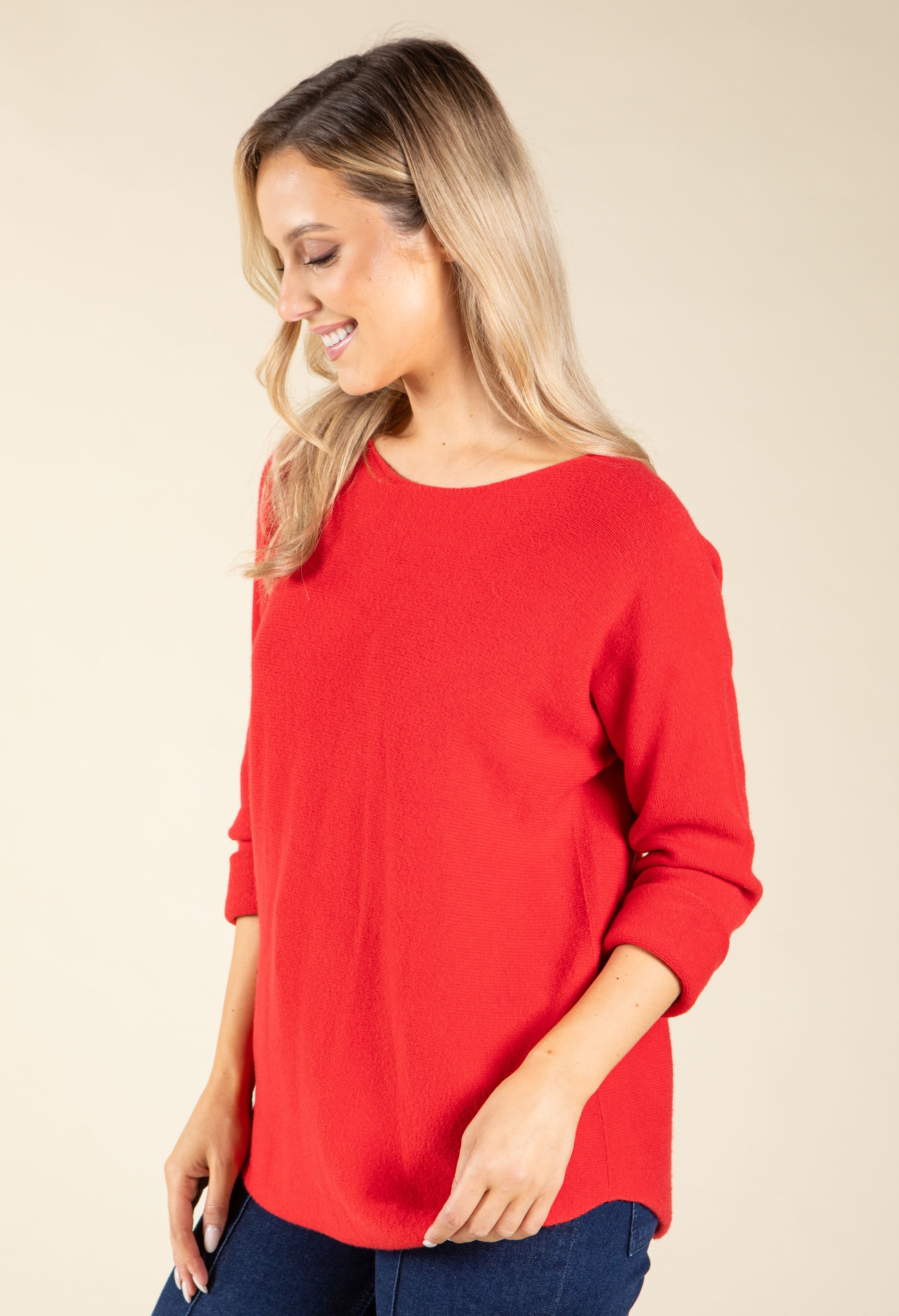 This finely crafted long-sleeve knit features a soft feel, complemented by a rounded hemline and a timeless round neckline for a polished look.