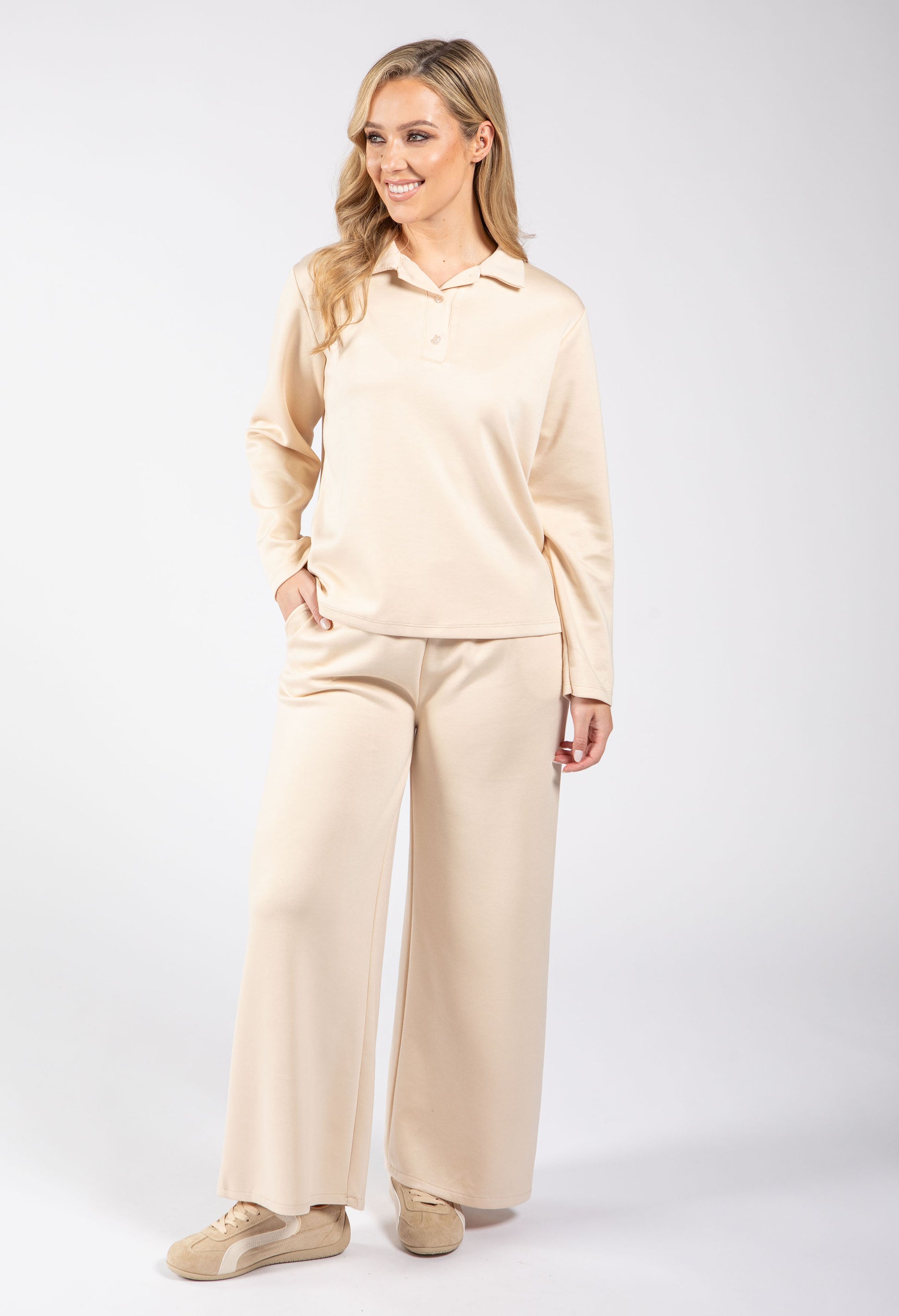 Discover everyday comfort with this versatile long sleeve top. Crafted from a luxuriously soft touch stretch fabric, it features a classic collar and convenient half button closure for easy styling. This piece transitions seamlessly from casual to smart-casual looks.