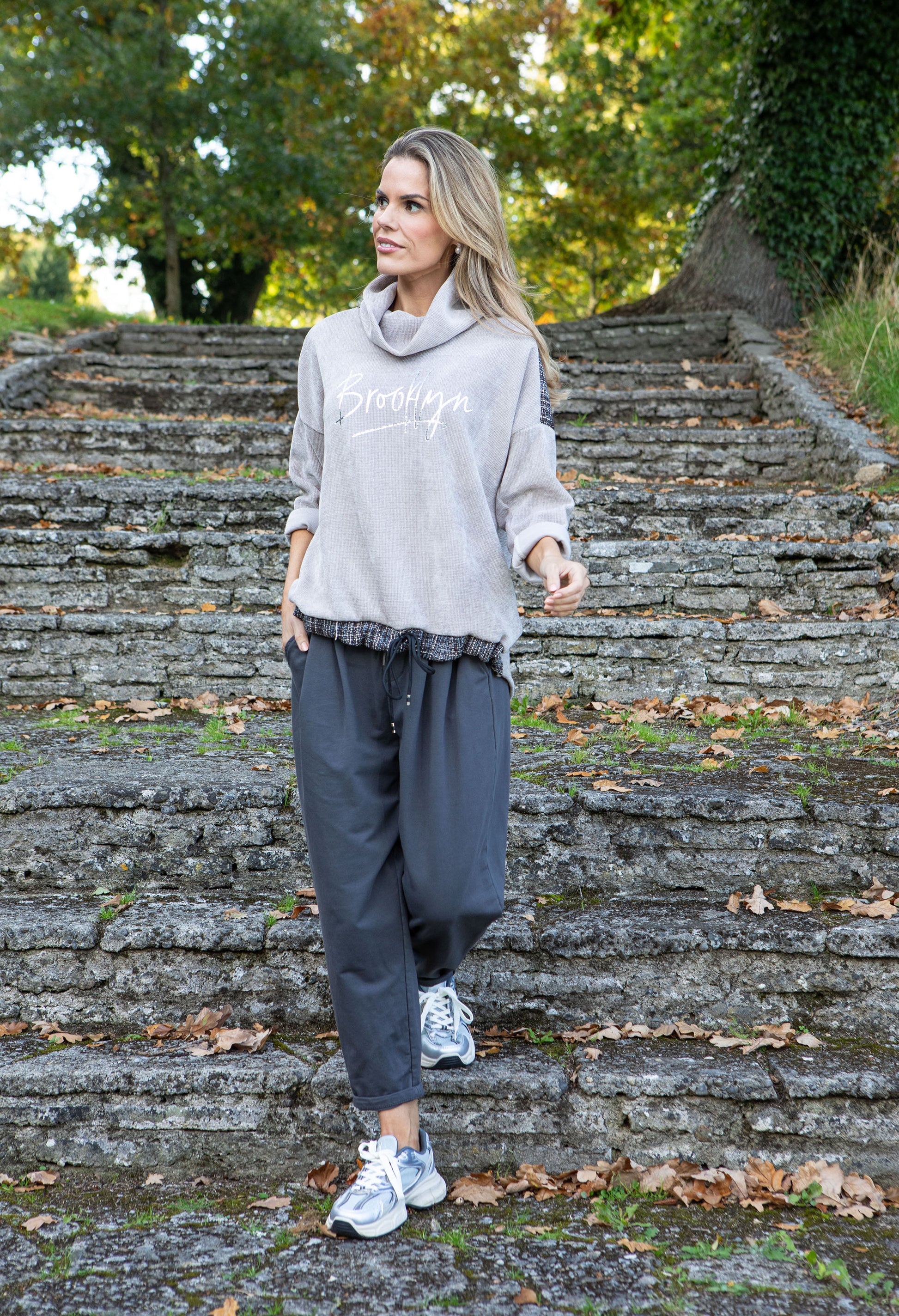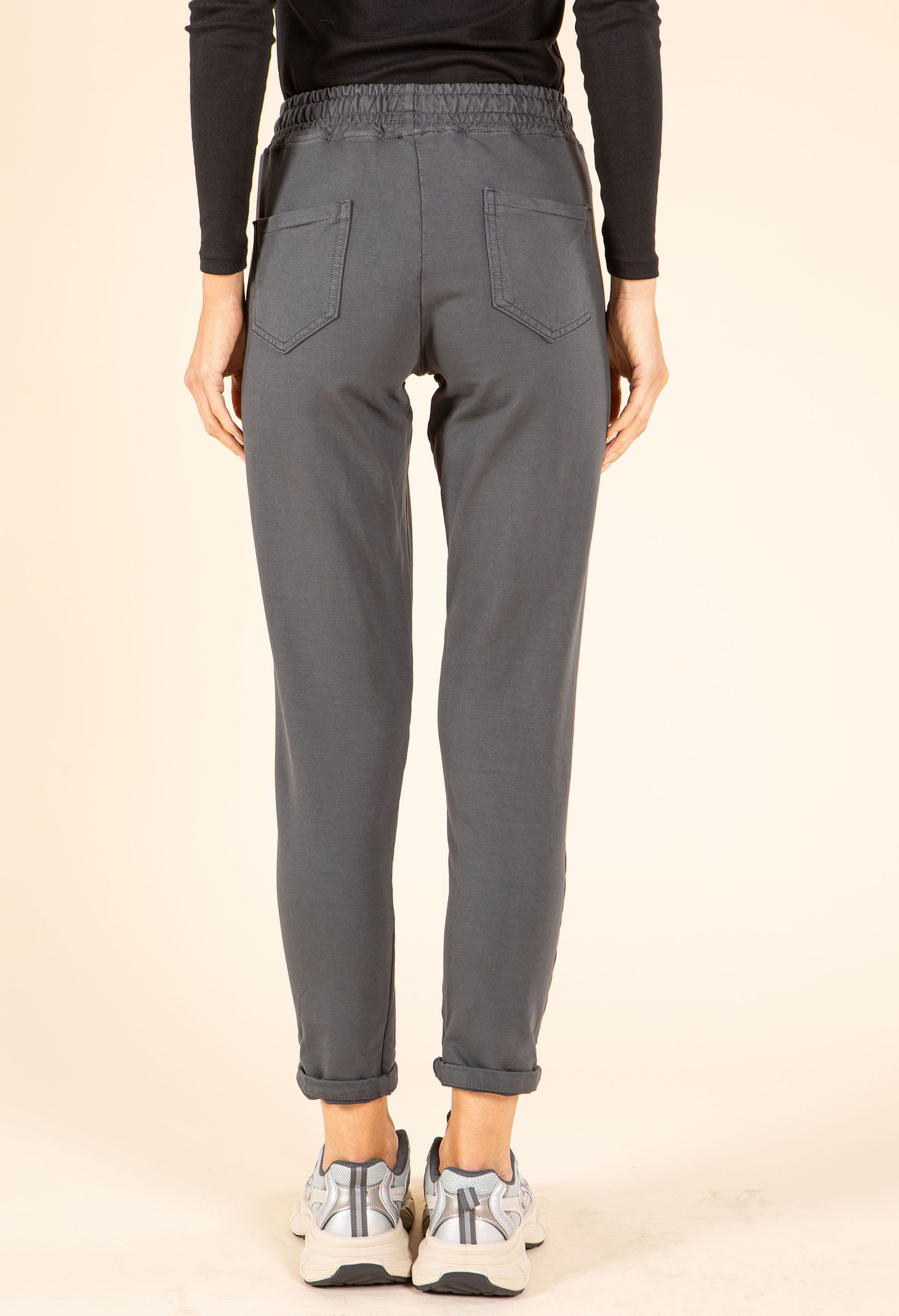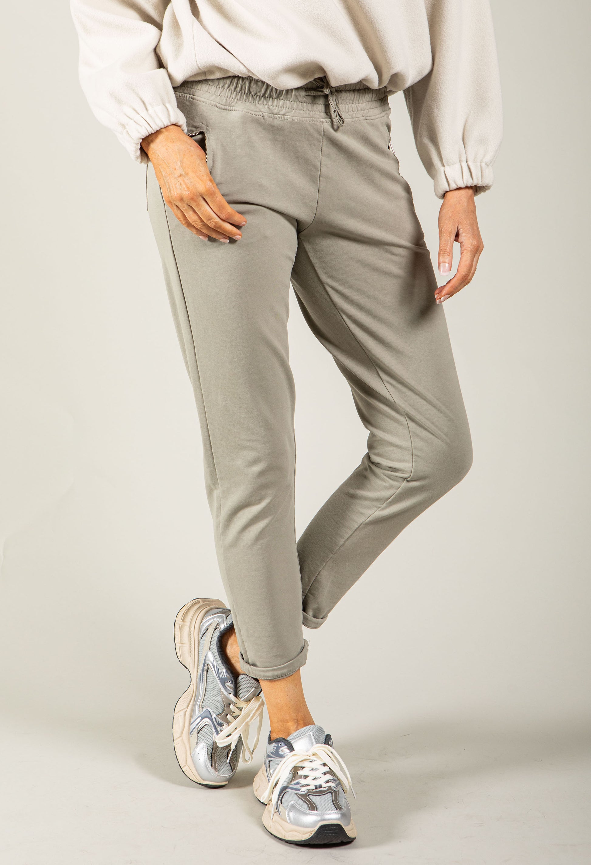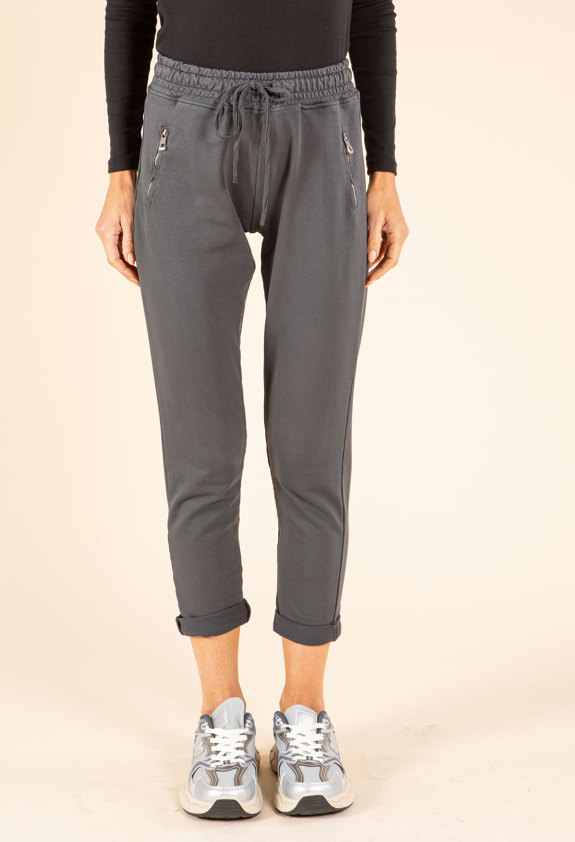 These Zip Pocket Joggers feature an elasticated waistband with a drawstring for a customizable fit. Designed with side zip-up pockets and open back pockets, they offer practical storage. Made from a stretch material and cut to a 7/8 length, they combine comfort and style effortlessly.