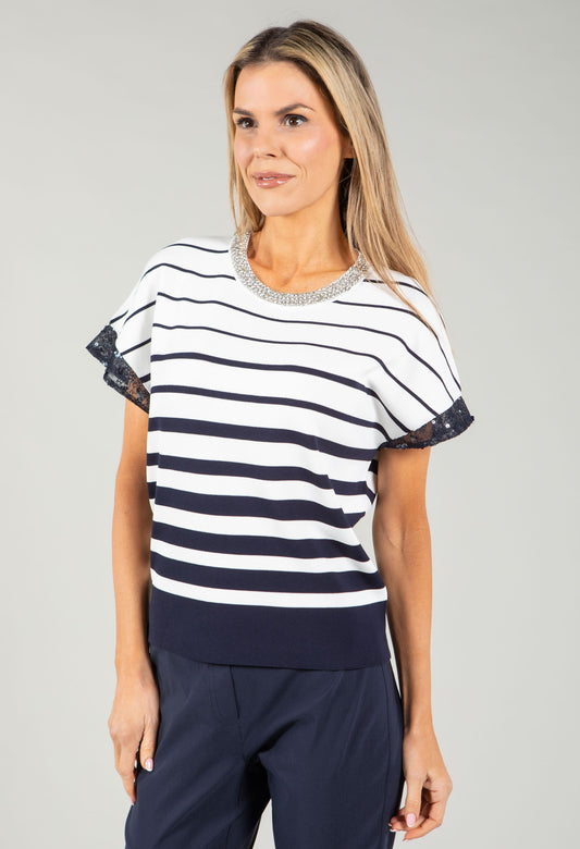 Mini Maya Stripe Embellished Midi Dress With Bow in Berry