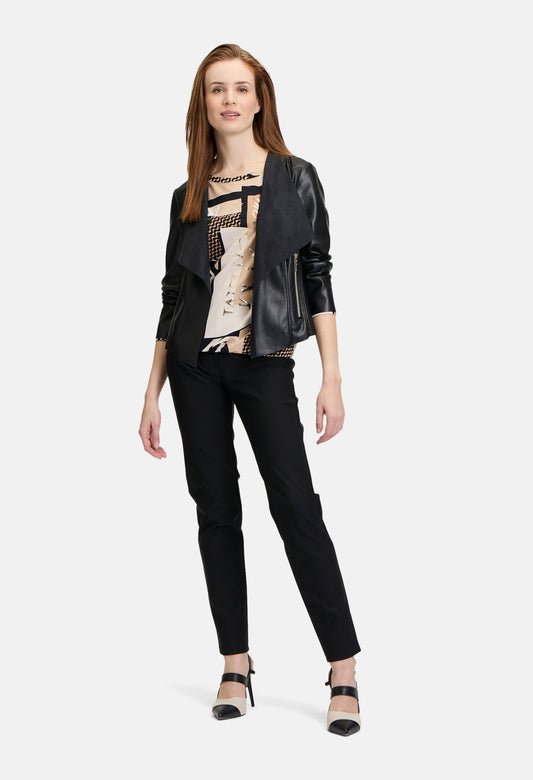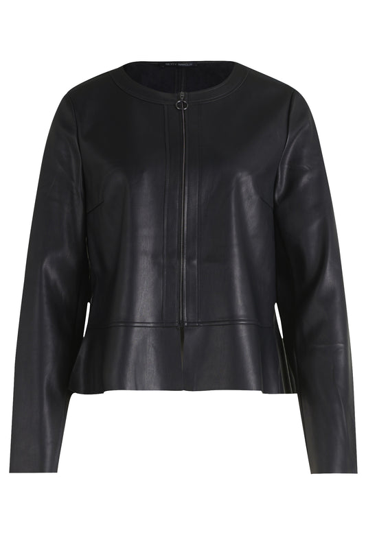 Foiled Faux Suede Jacket With Rhinestone in Black