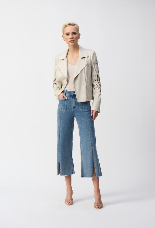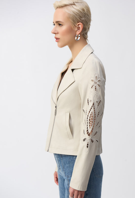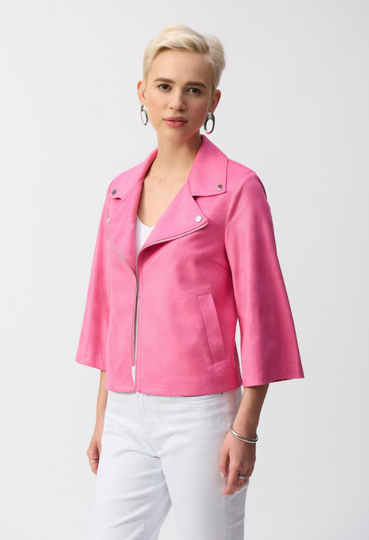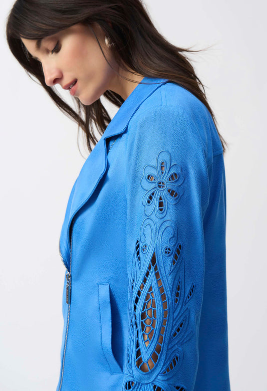 Foiled Faux Suede Jacket With Rhinestone in Royal Blue