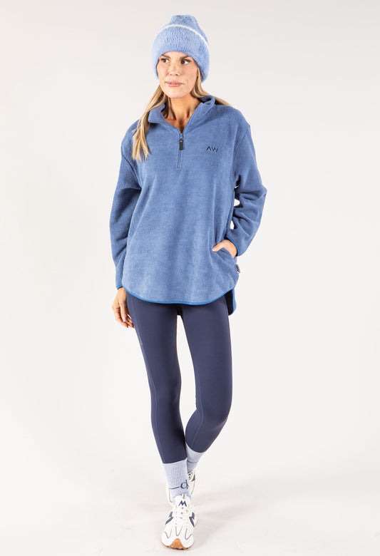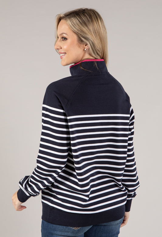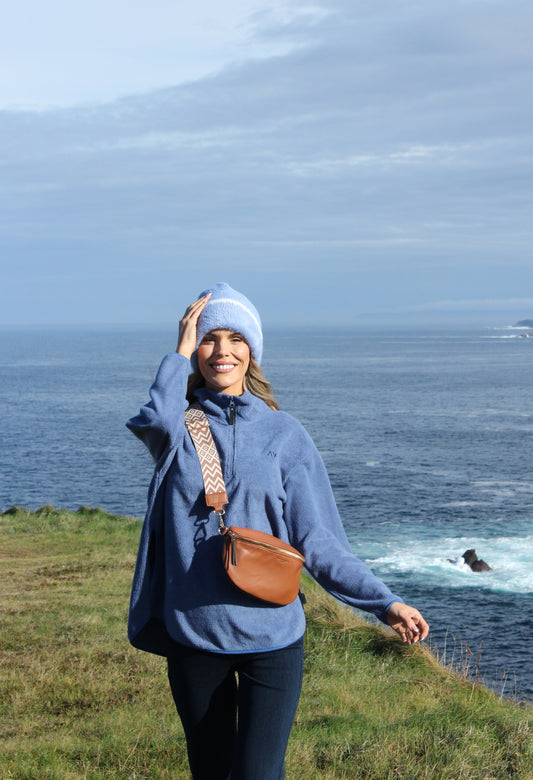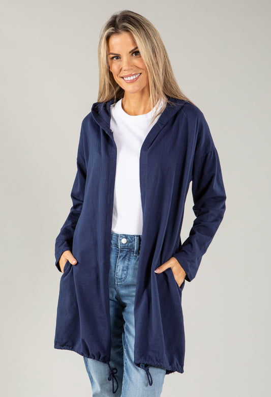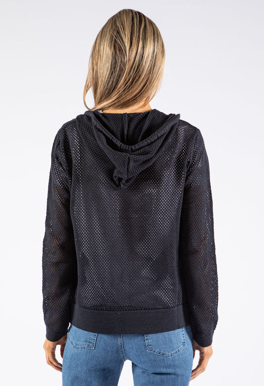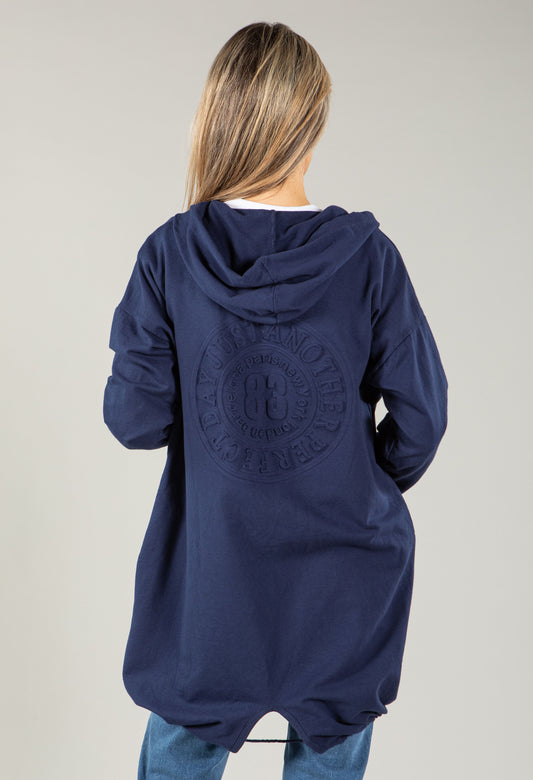 Fair Isle Hooded Knit Cardigan in Navy Mix