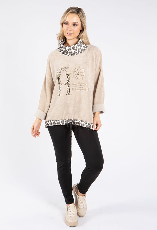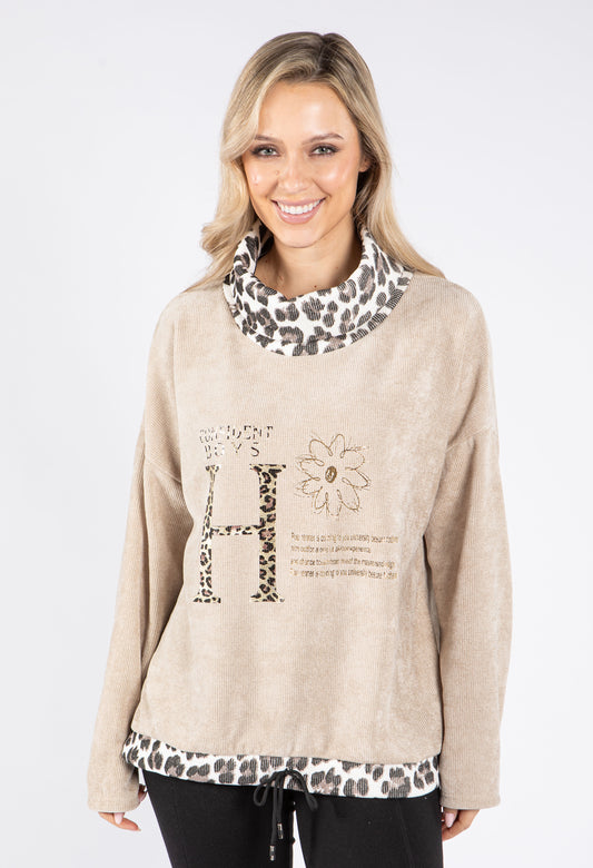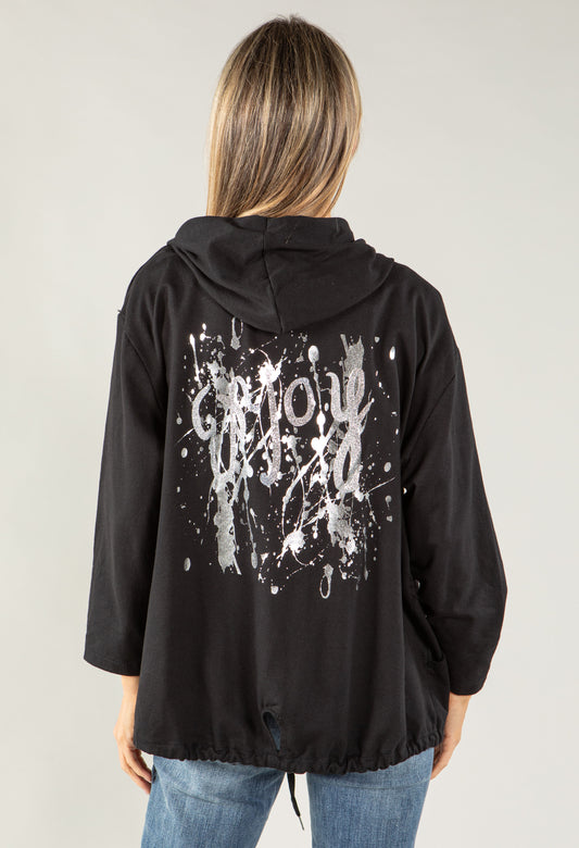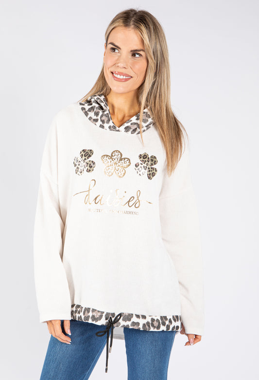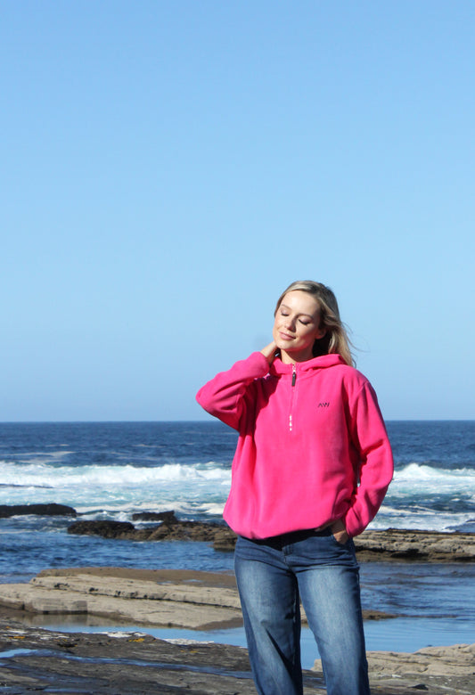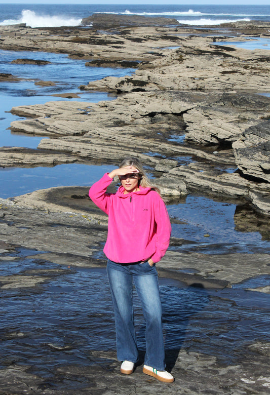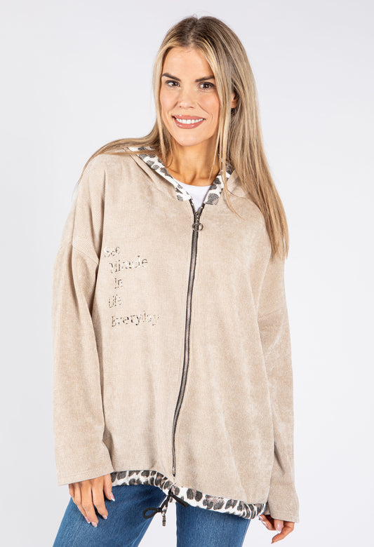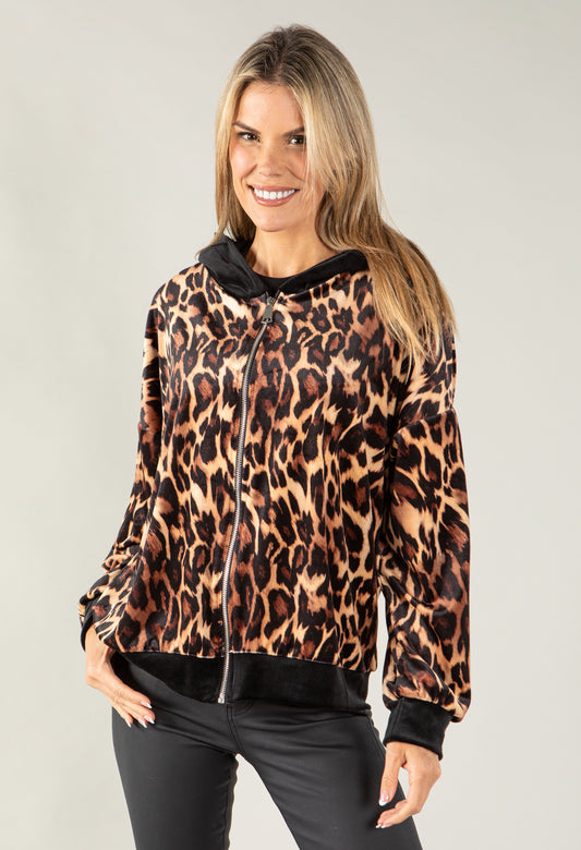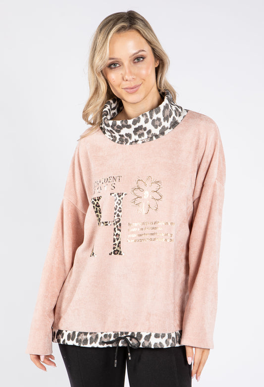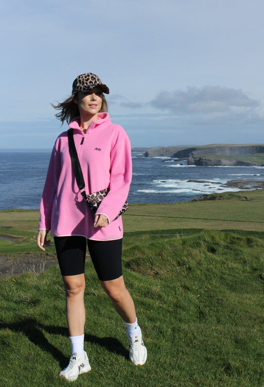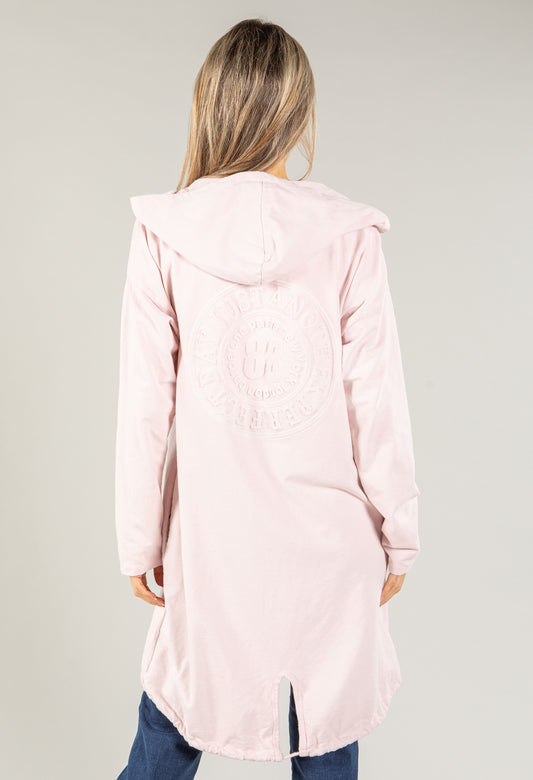 Soft Touch Leo Detail Zip Up Hoodie in Pink