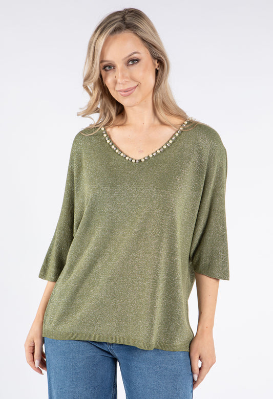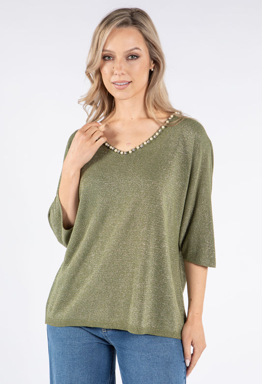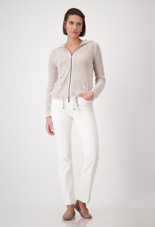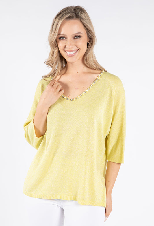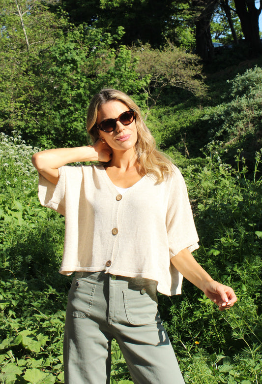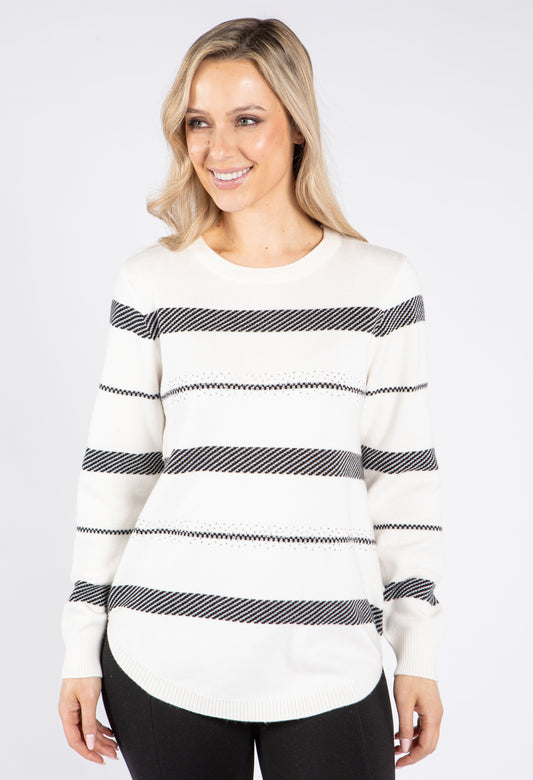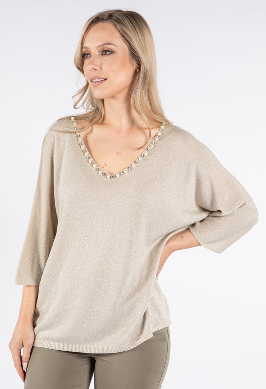 Scalloped Neck Bobble Knit Jumper in Oatmeal