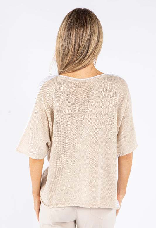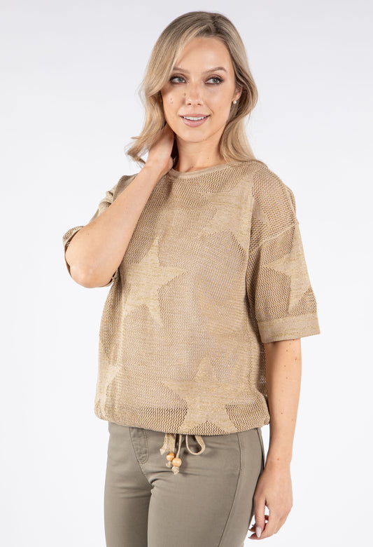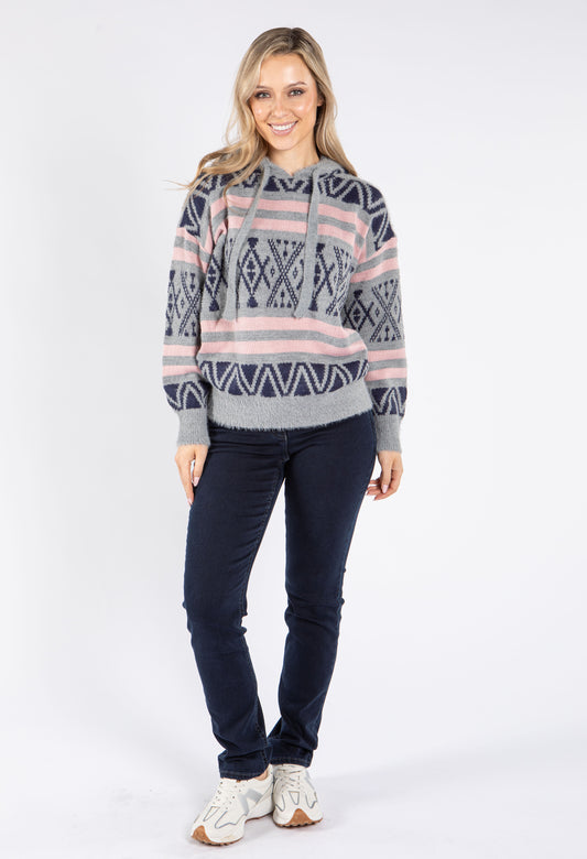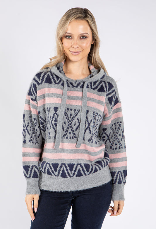 Geometric Design Knit Jumper in Light Toffee Mel.