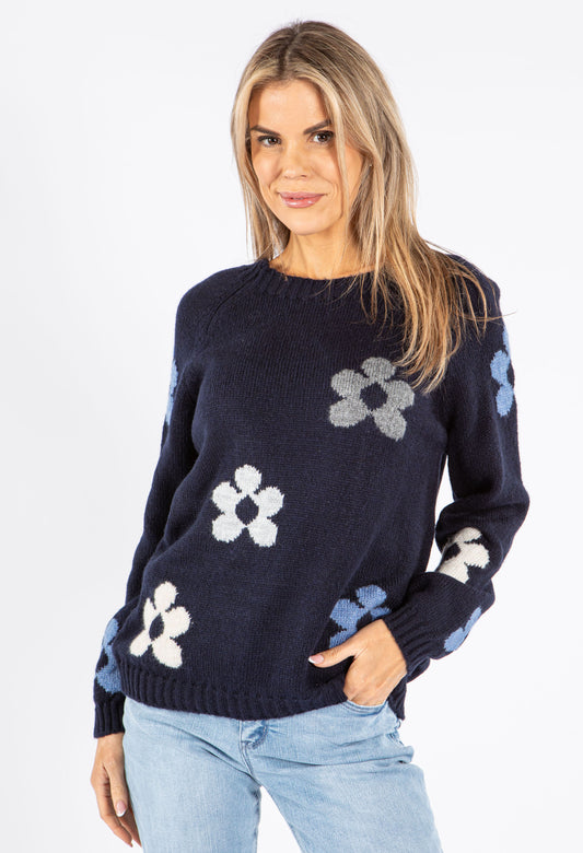 Floral Batwing Sleeve Knit Top in Navy Mix
