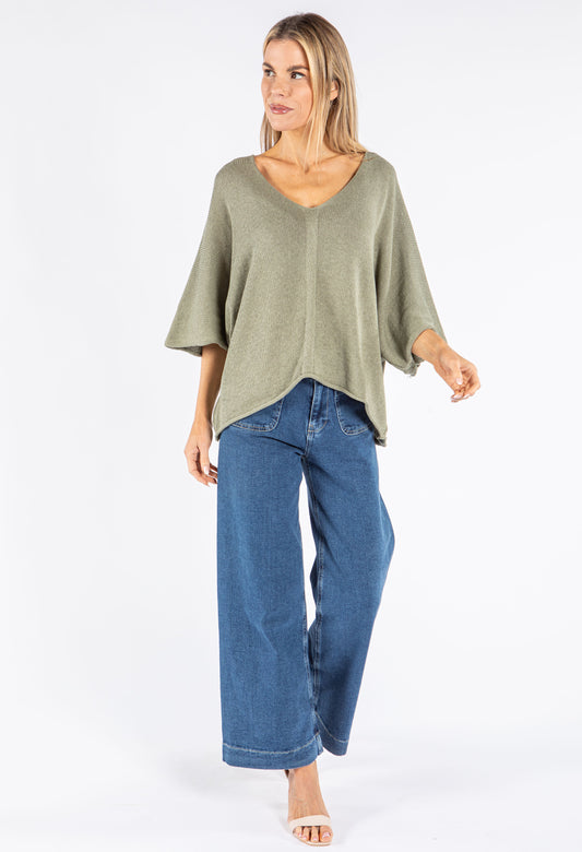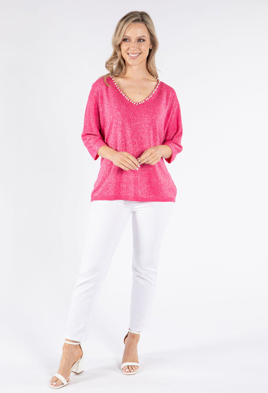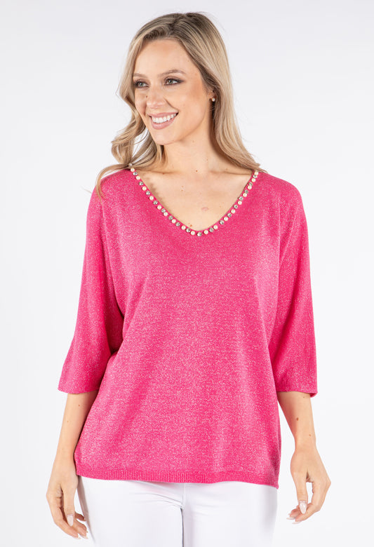 Dolman Sleeve Crew Neck Knit Top in Rose Pink
