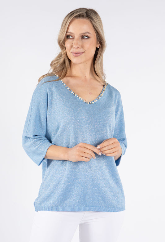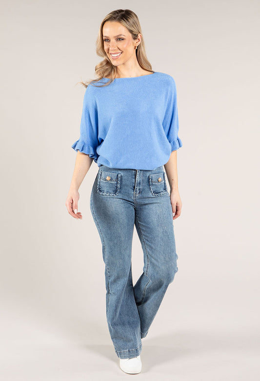 Puvet Slim short-sleeved knitted jumper in Water Blue