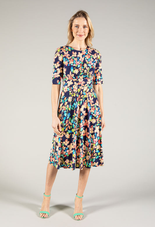 Victoria Angel Sleeve Mesh Midi Curve+ Dress in Navy Flower