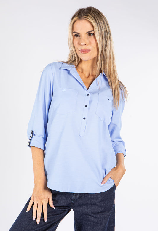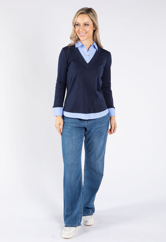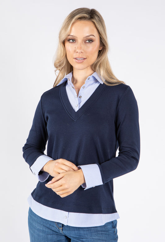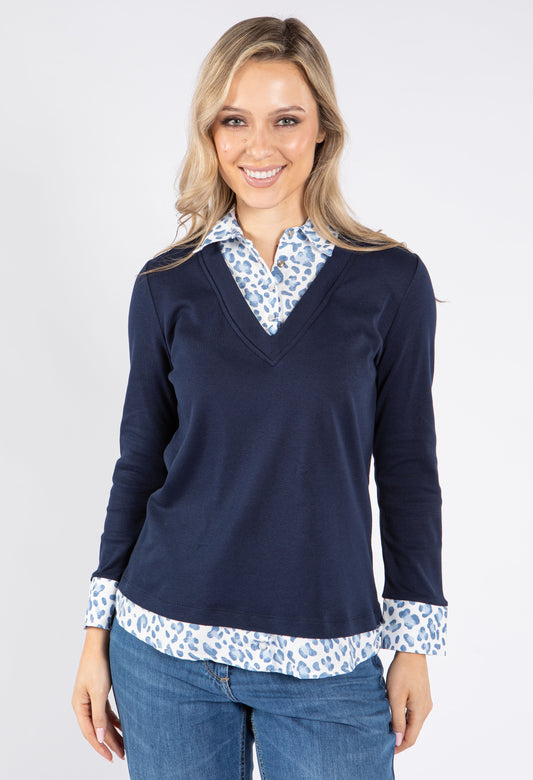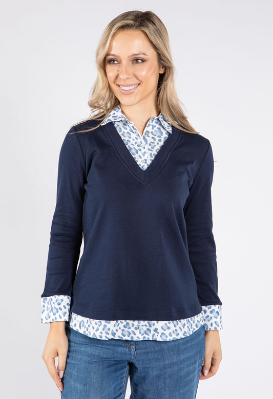 2 in 1 Shirt Top in Navy/Blue