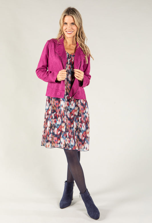 Harper Dress in Polka Dot in Fushia