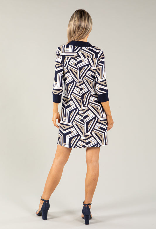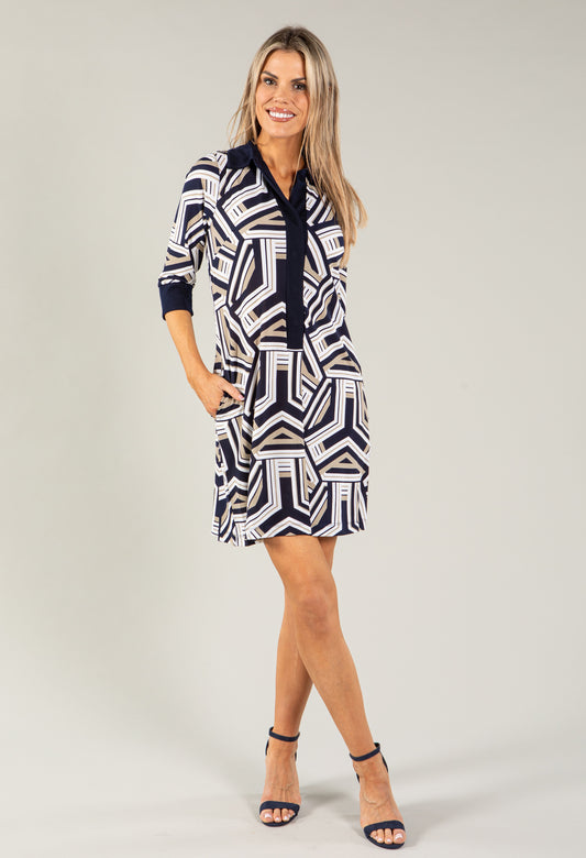 Geometric Print Tie Neck Dress